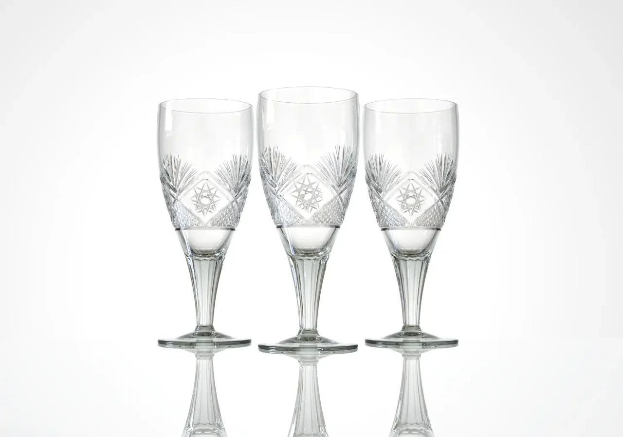 Through the years, craftsmen perfected an array of glassmaking and finishing techniques: cutting, engraving, molding, painting, etching, matting, antique finishes, and crackle effects. In their hands, glass gained personality — translucency with softness, lines that reveal precision, surfaces that capture light as if they belonged to a living being.
