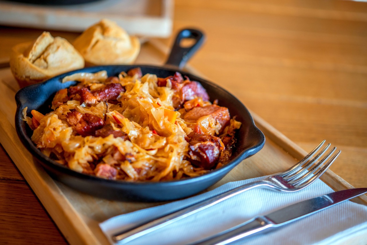 Roasted sour cabbage with meat or turkey, baked until caramelized at the edges. It is smoky, tangy, and perfect for the coldest evenings.