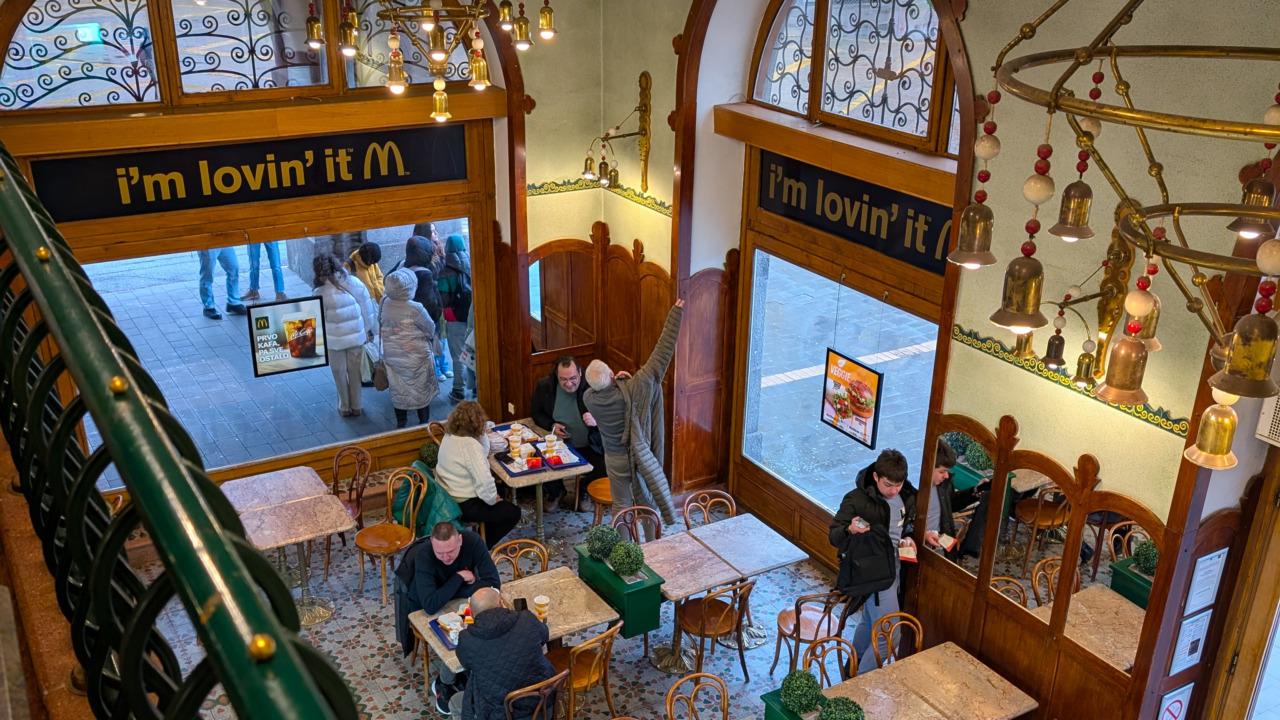 I umesto da se ta dva sveta sudare, oni ovde funkcionišu zajedno. Zbog toga se ovaj restoran često opisuje kao jedan od najlepših McDonald’s-a u Evropi, ali i kao jedan od retkih primera gde lanac brze hrane postaje deo kulturnog nasleđa grada.